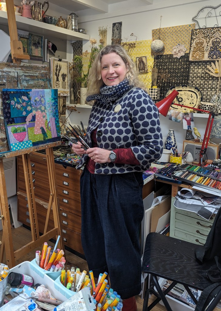 Hello! Welcome to my website. I am Jenny Martin RSW, an artist working in painting and printmaking. I live in Edinburgh, in an area called Portobello, and work from my garden studio in my beachfront house.