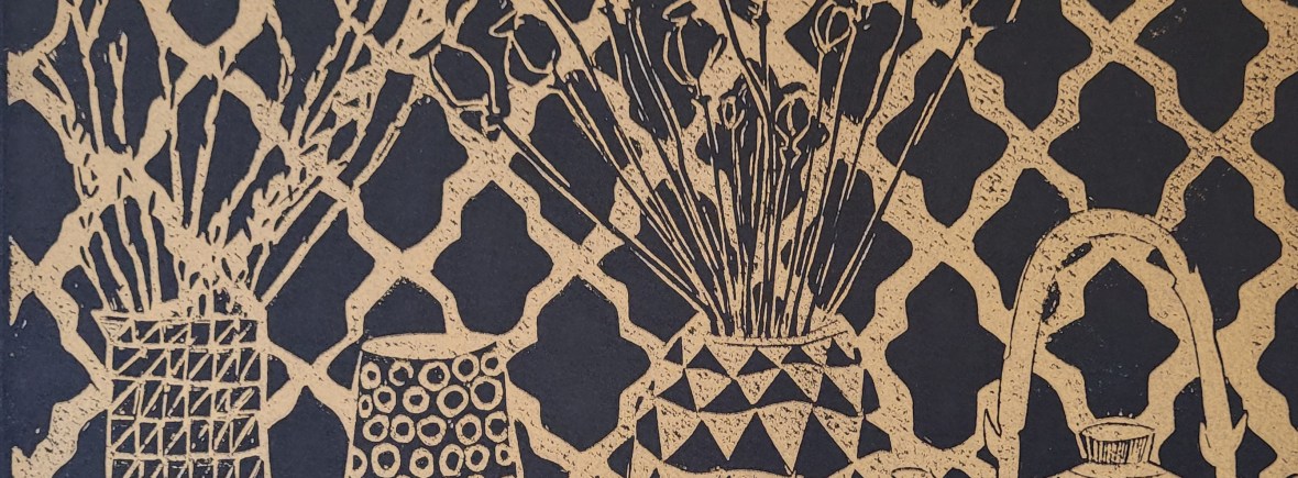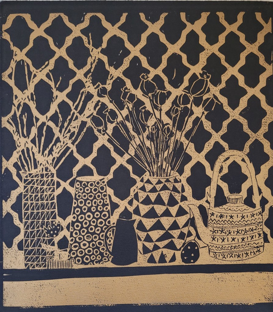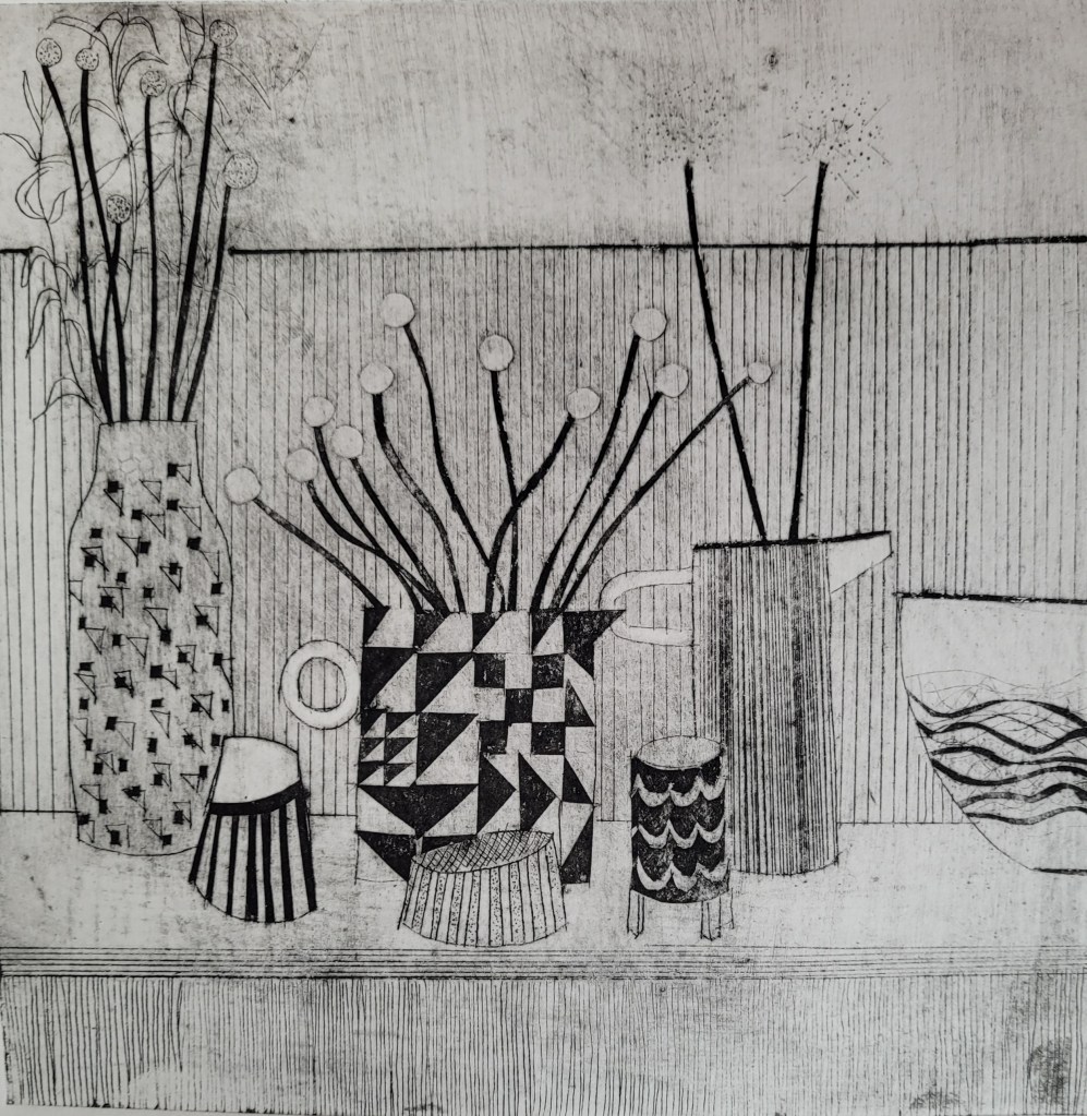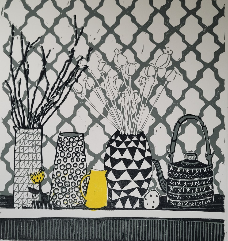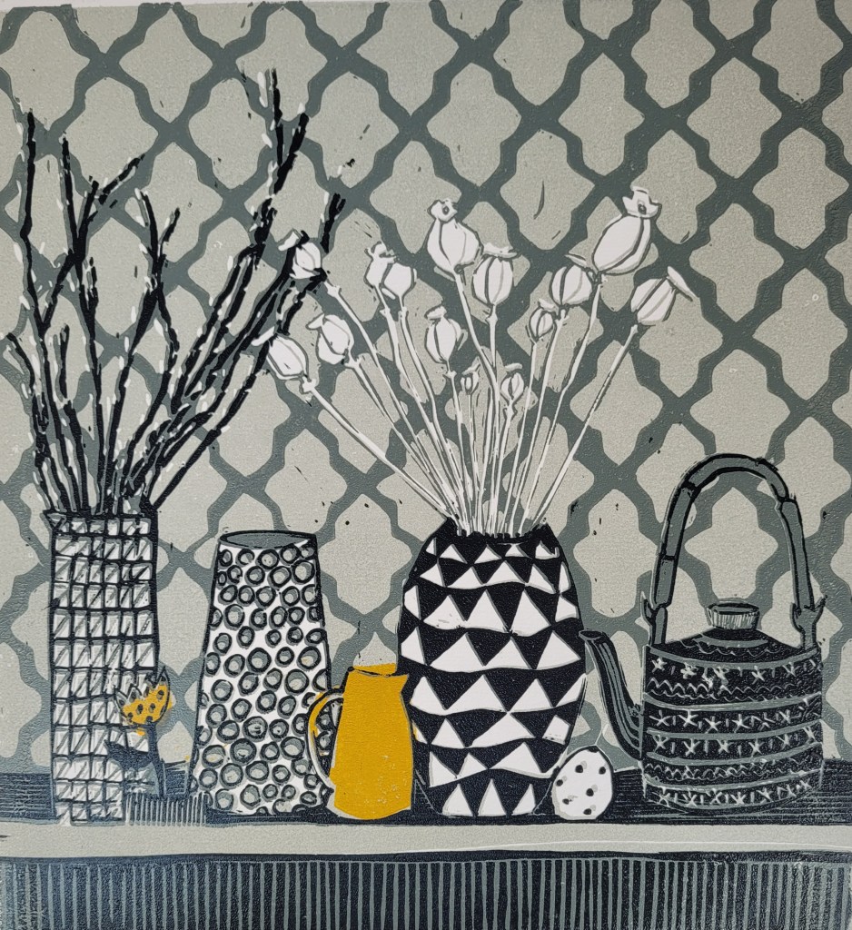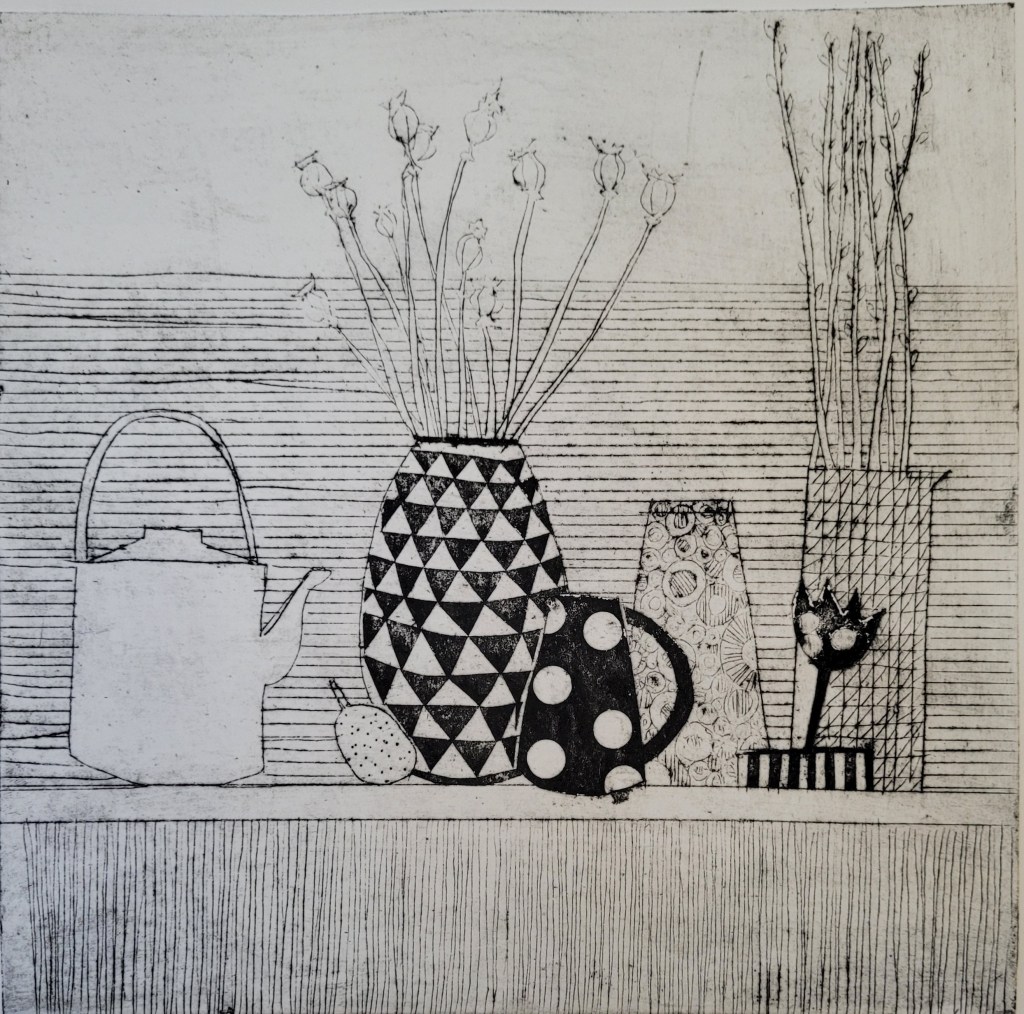 Still Life Printmaking Click the images or titles to find out more information. To see a selection of my sketchbook pages, click here. The Yellow Jug The Yellow Jug (artist proof) Patterned Vases Dried Flowers and Seed Heads Gold Jugs Poppy Heads and Vases Gold Sadler Teapot Golden Teapot on Indian Cloth Vintage Teapot I See Sea Shells Sea Treasure Sunny Beside the Fire Cat and Stag’s Horn Fern Sunny with Patterned Cushions Cat with Plants Sunny Having a Snooze Sunny with Aliums