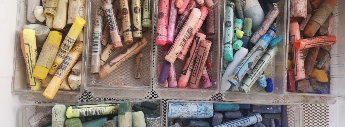 I work a lot in drawing and painting. I love colour and surface and painting provides a wonderful opportunity to use this. I tend to work in mixed media, using acrylic paint, pastels -both chalk and oil – inks and collage. I often start with a chaotic surface and then gradually work into the piece, imposing some element of control and drawing out the image.