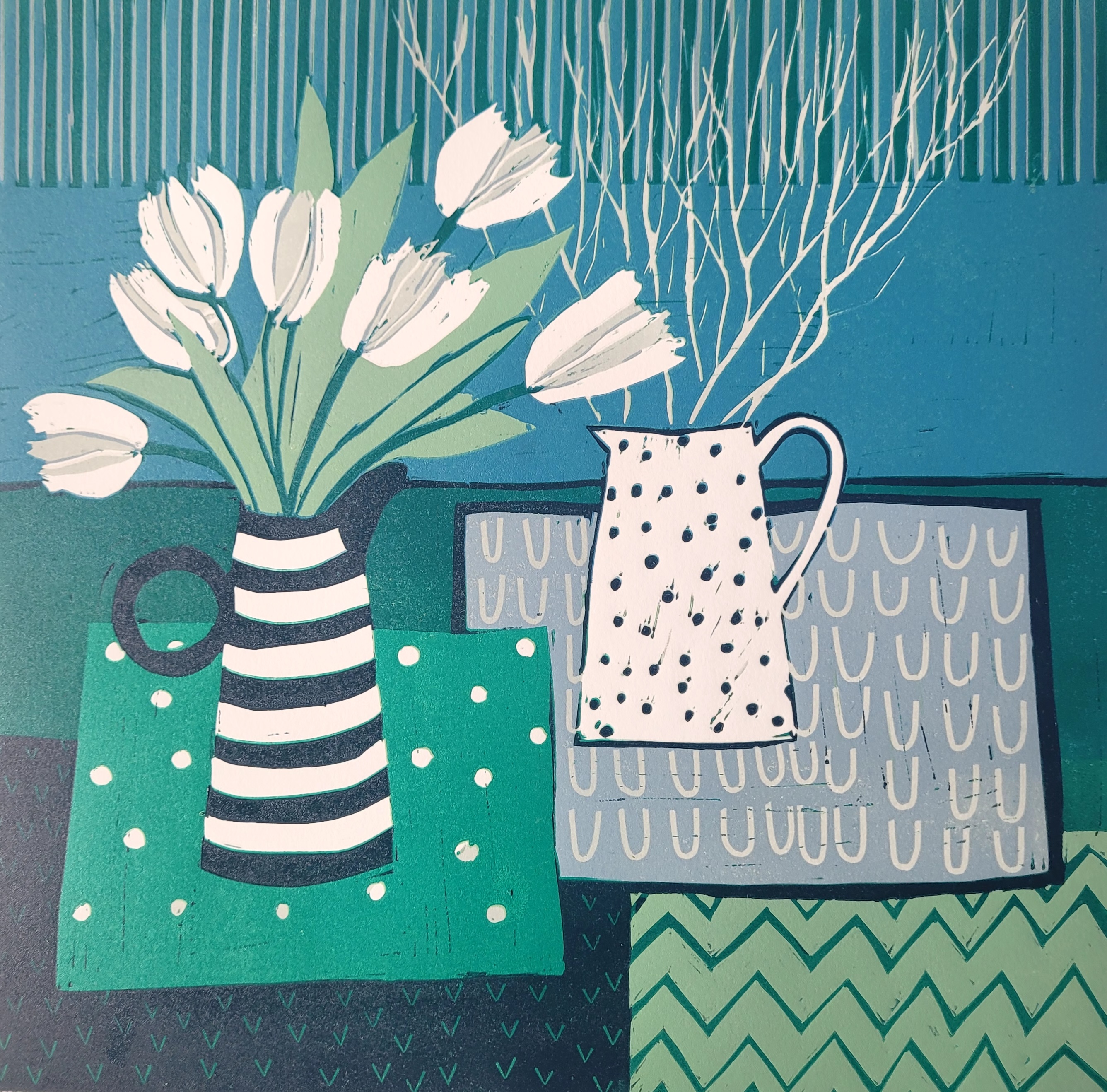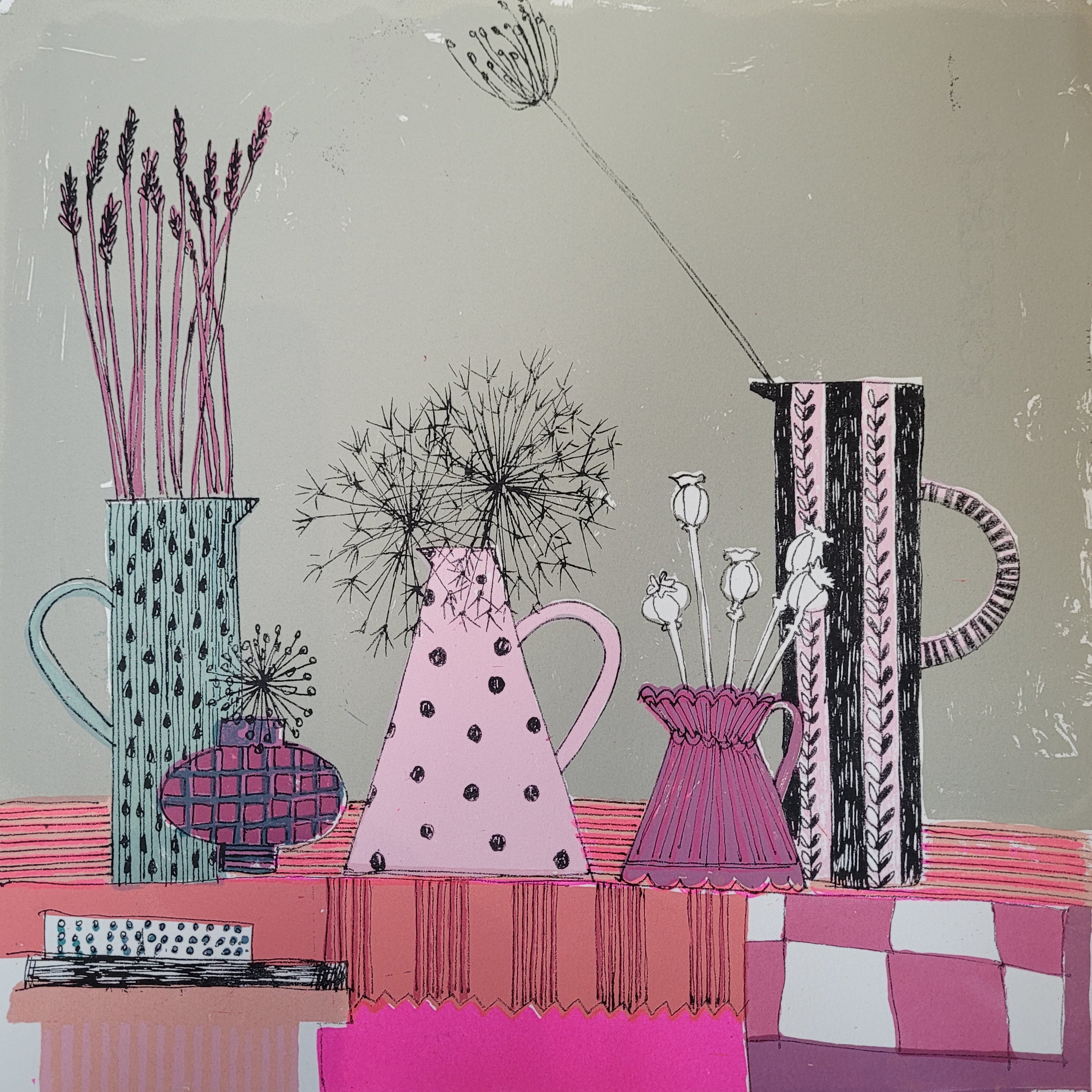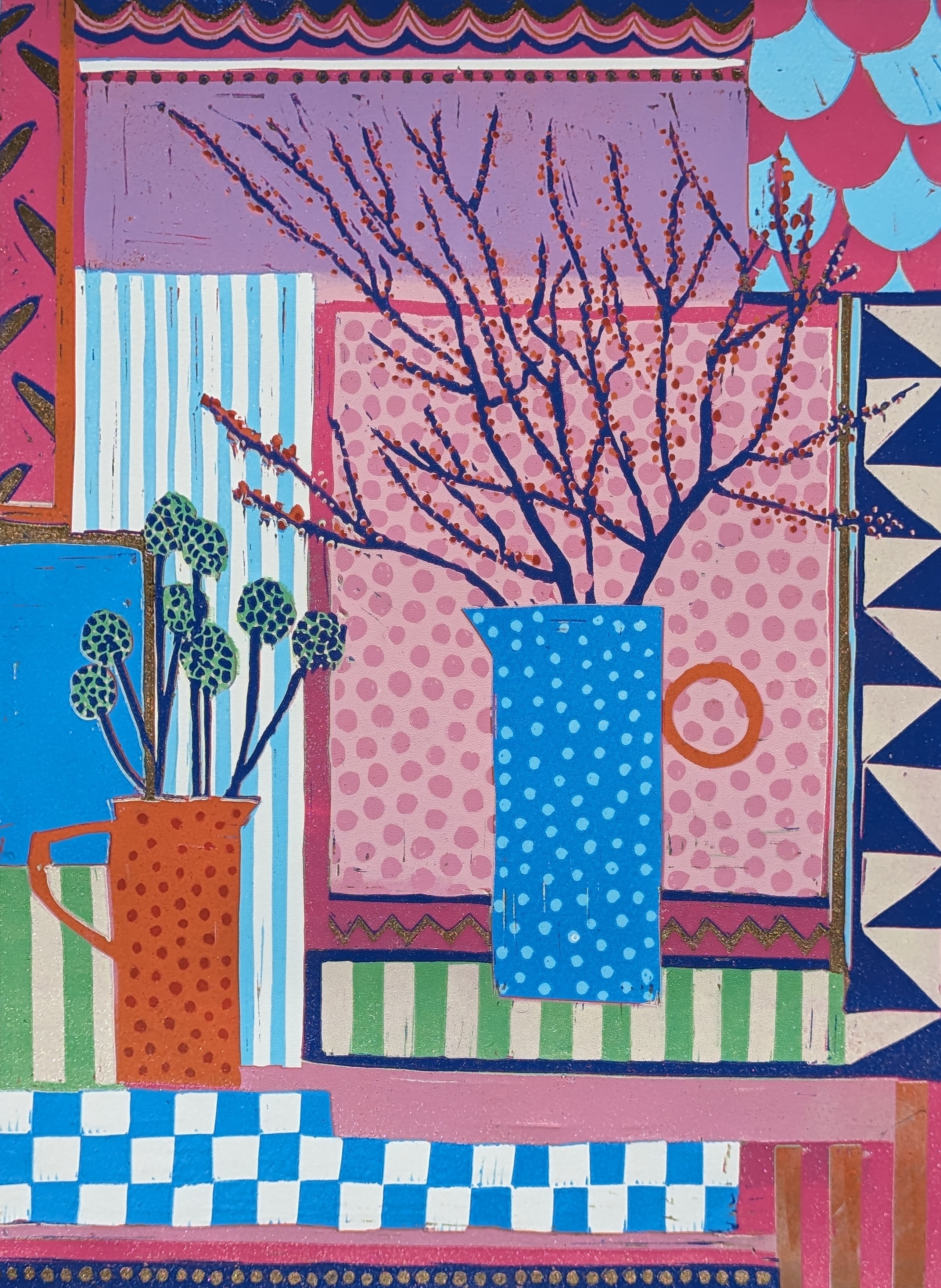 This is a series of work in linocut and screen print, exploring objects from my house and flowers from my garden and local wildlife areas. I am inspired by colour, pattern and the decorative possibilities they offer.