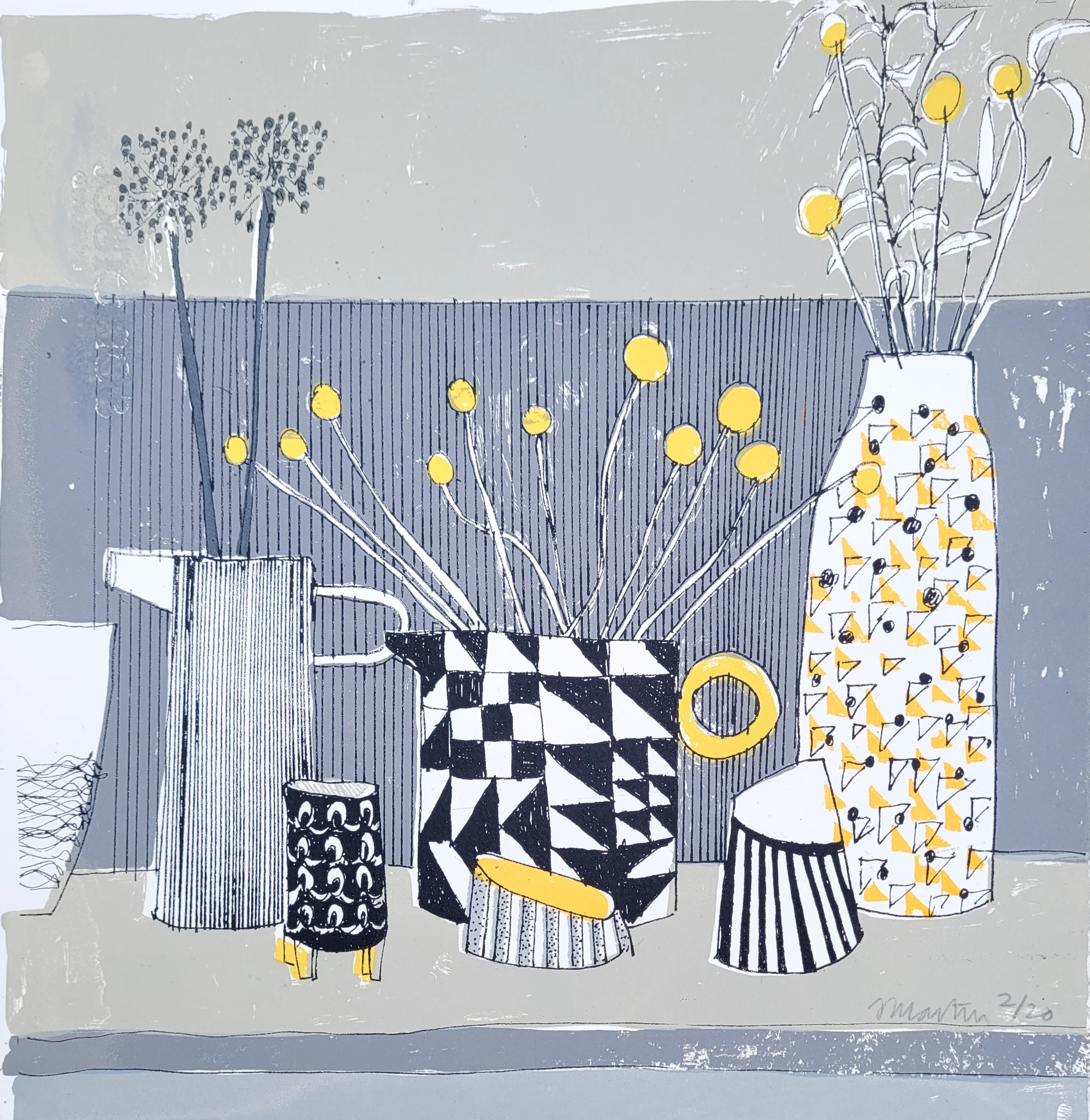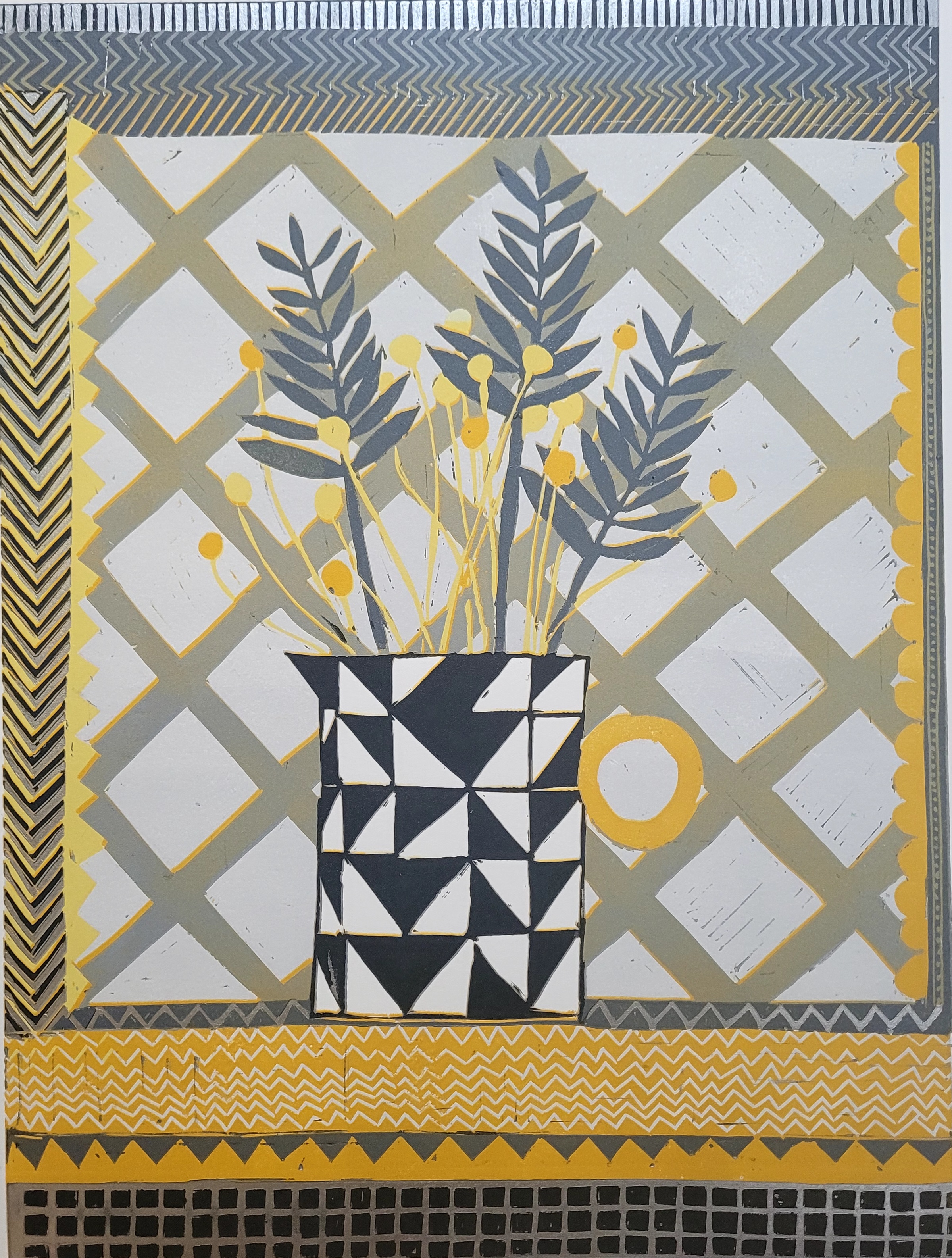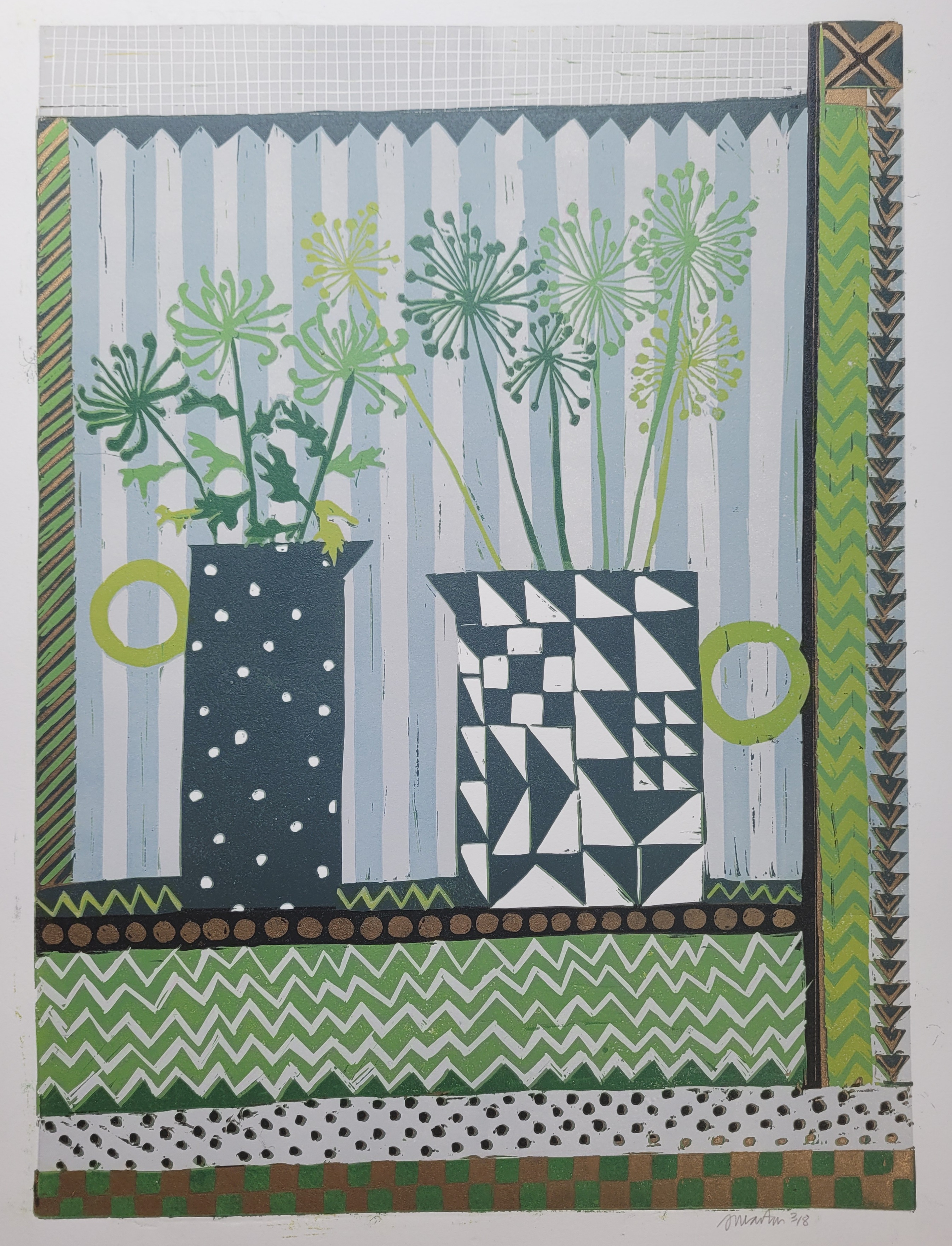 This is a series of work in linocut and screen print, exploring objects from my house and flowers from my garden and local wildlife areas. I am inspired by colour, pattern and the decorative possibilities they offer.