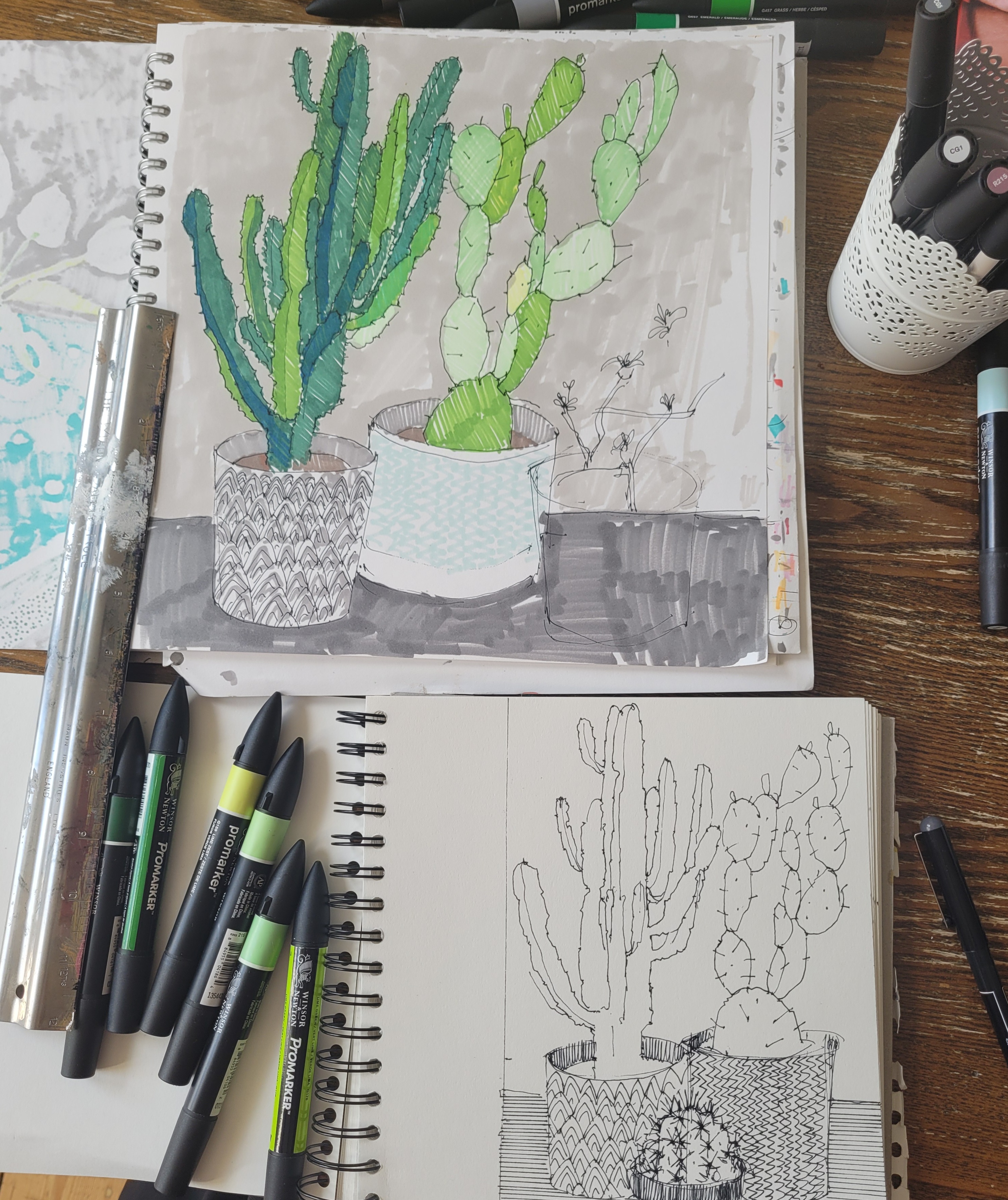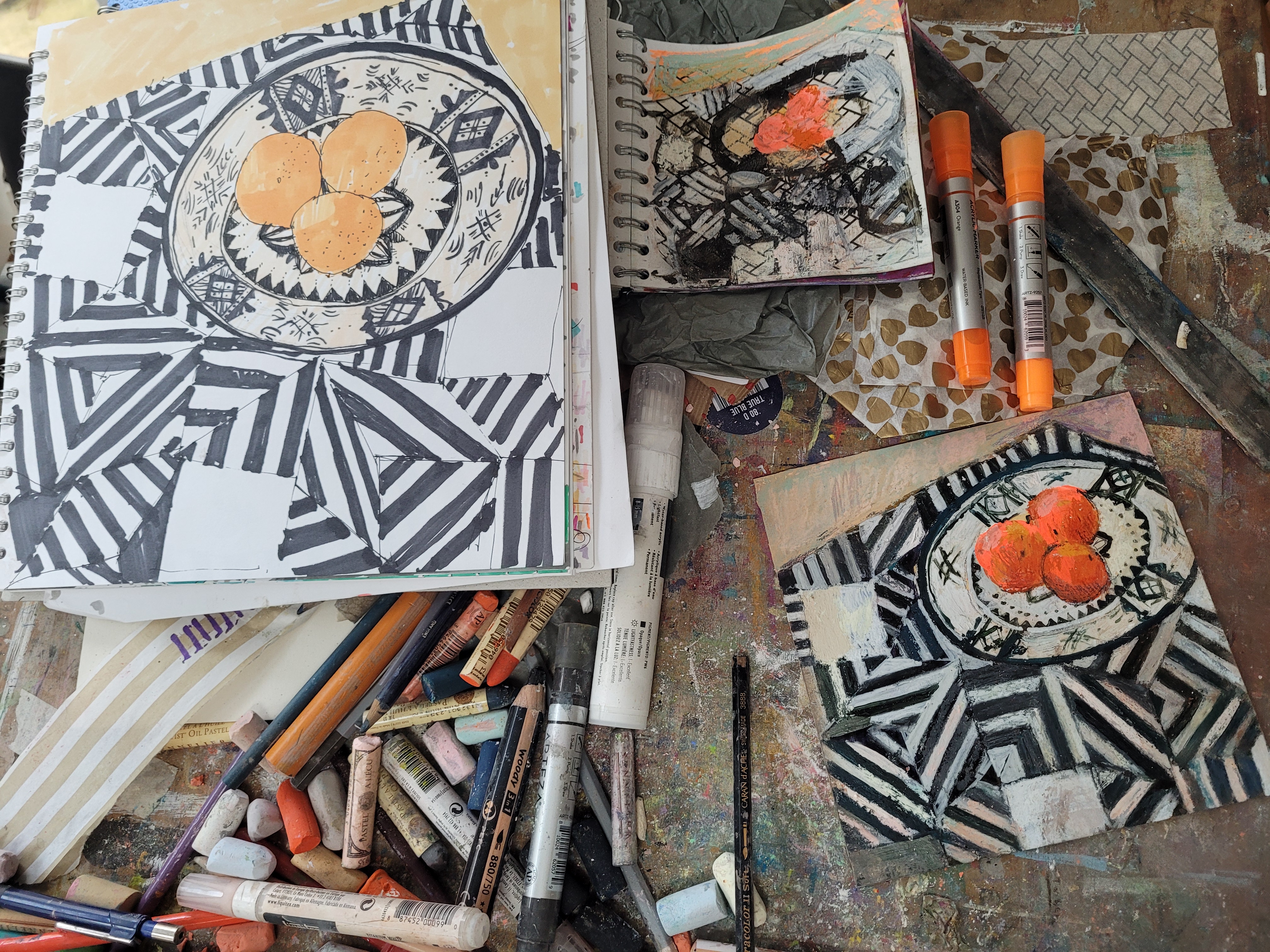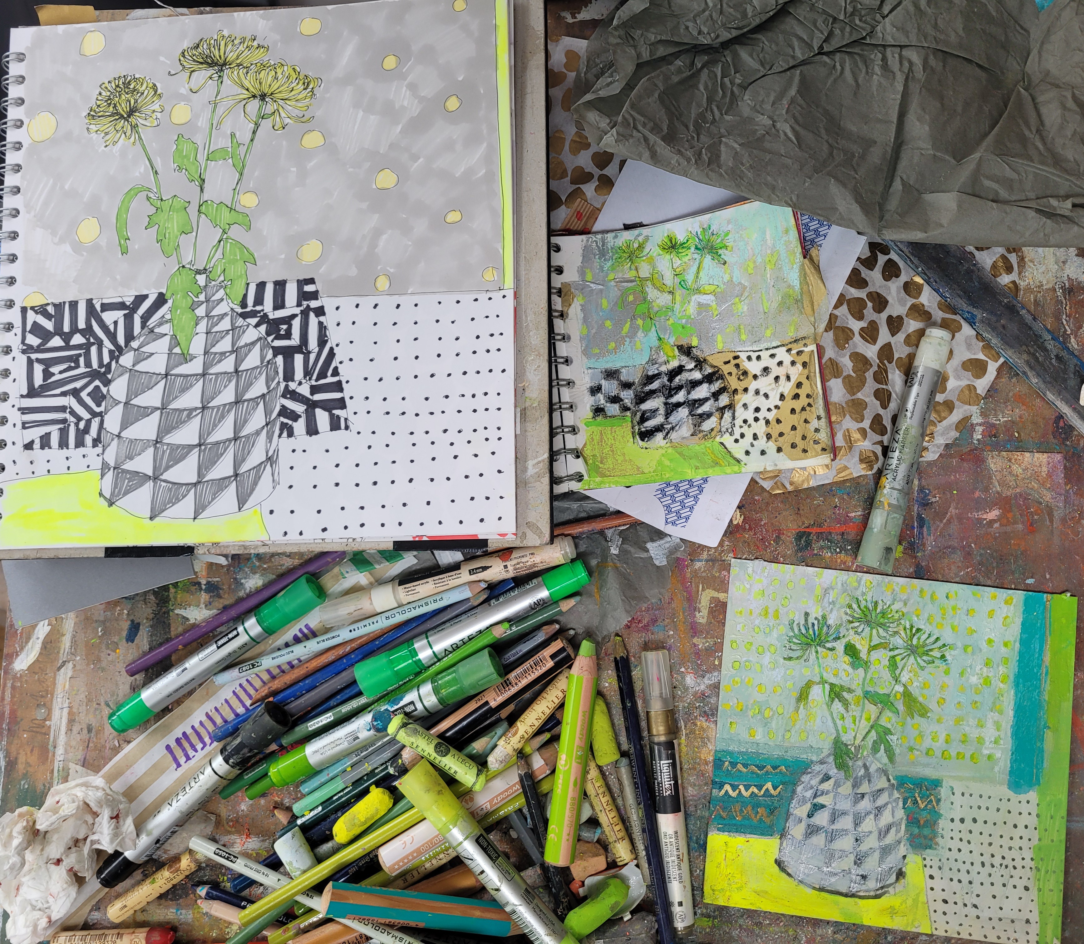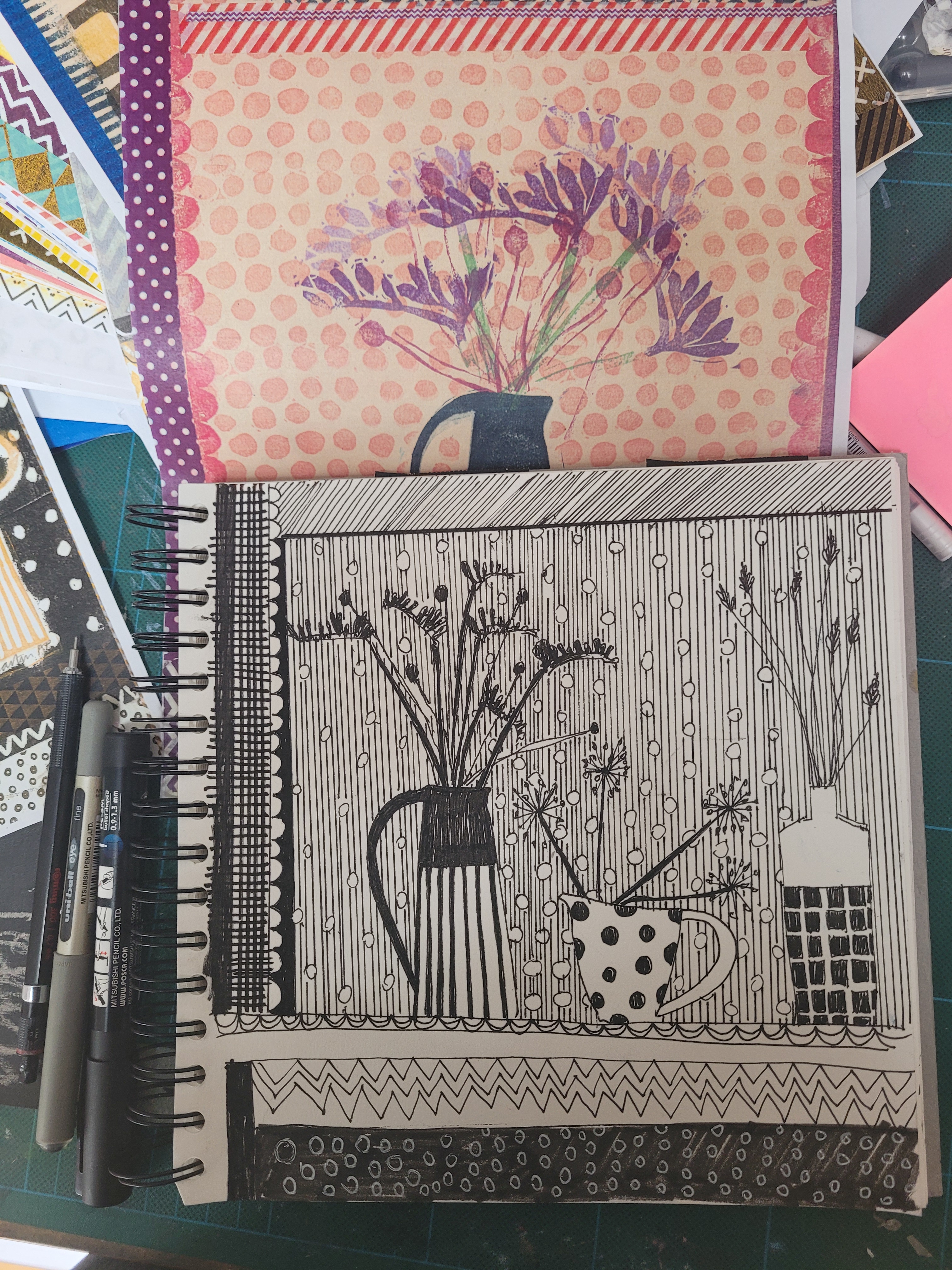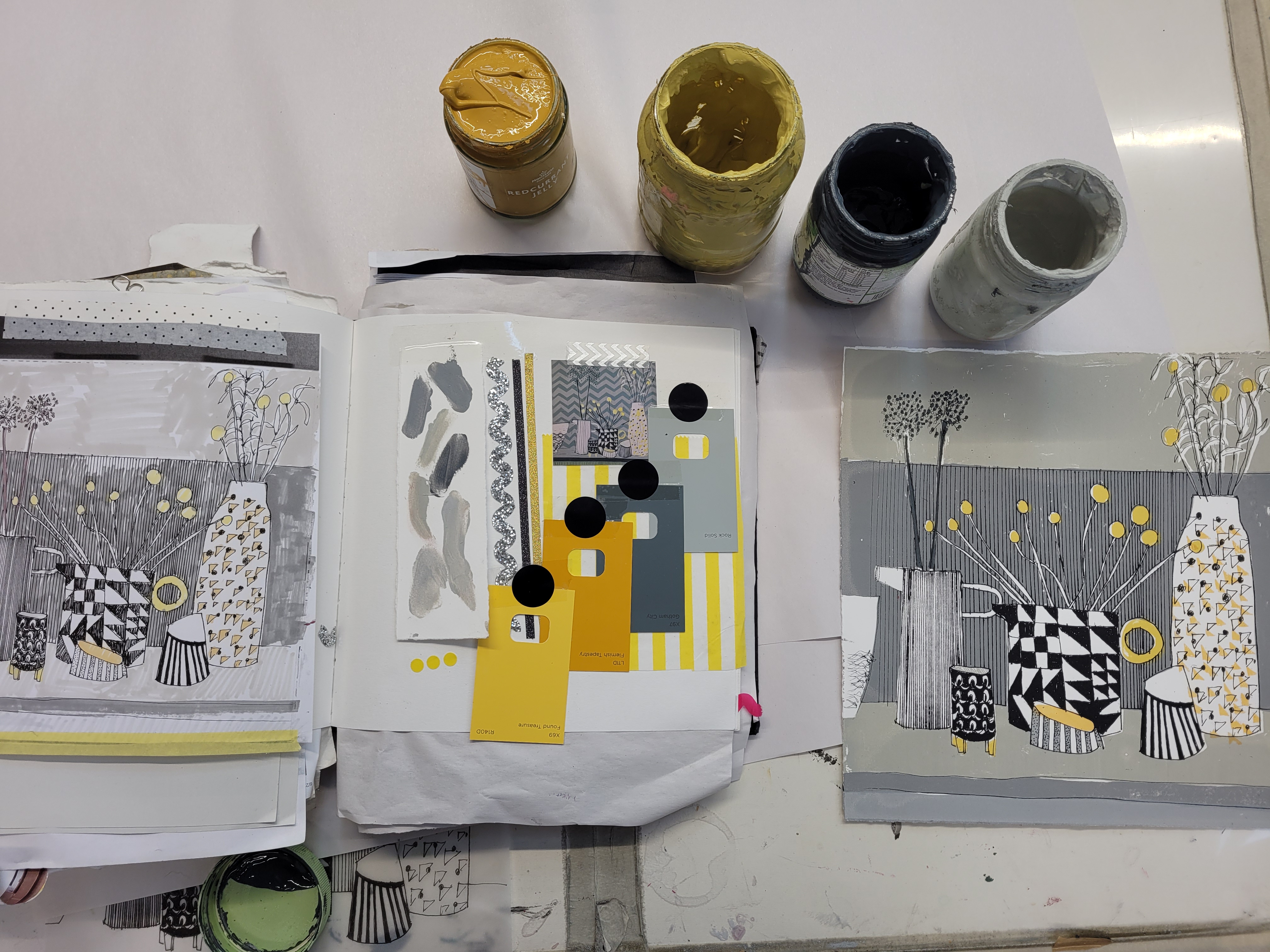 I love working in sketchbooks and get most of my ideas for work through drawing and playing about in them. I have loads of sketchbooks, and if you would like to look through them, I often welcome people to my studio to have a good old rummage – so if you would like that, get in touch and we can arrange something! Here is a small sample of some of my sketchbook pages to give you an idea of the kind of thing I get up to!