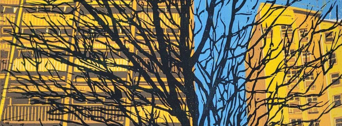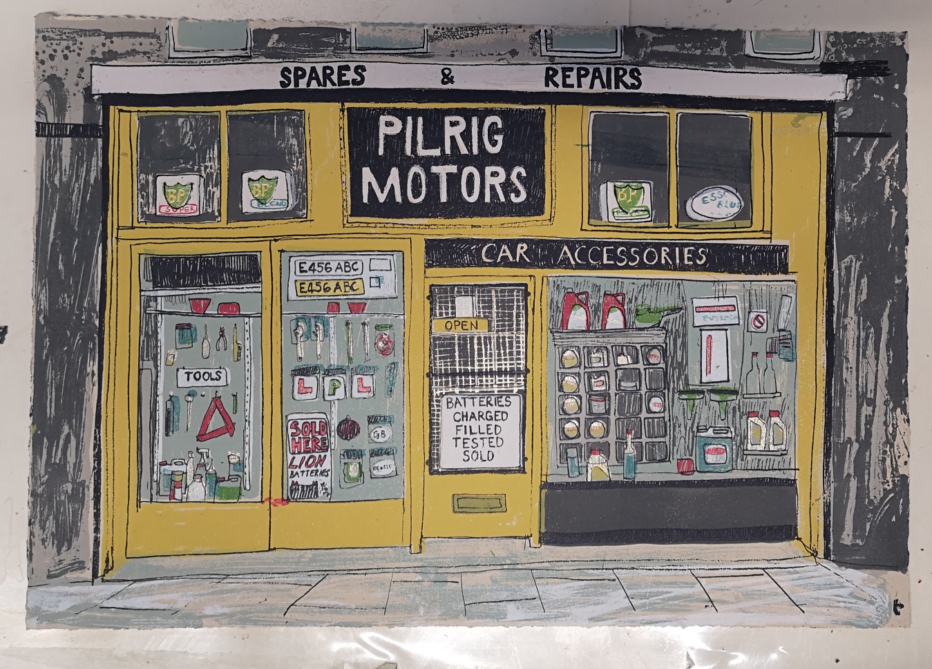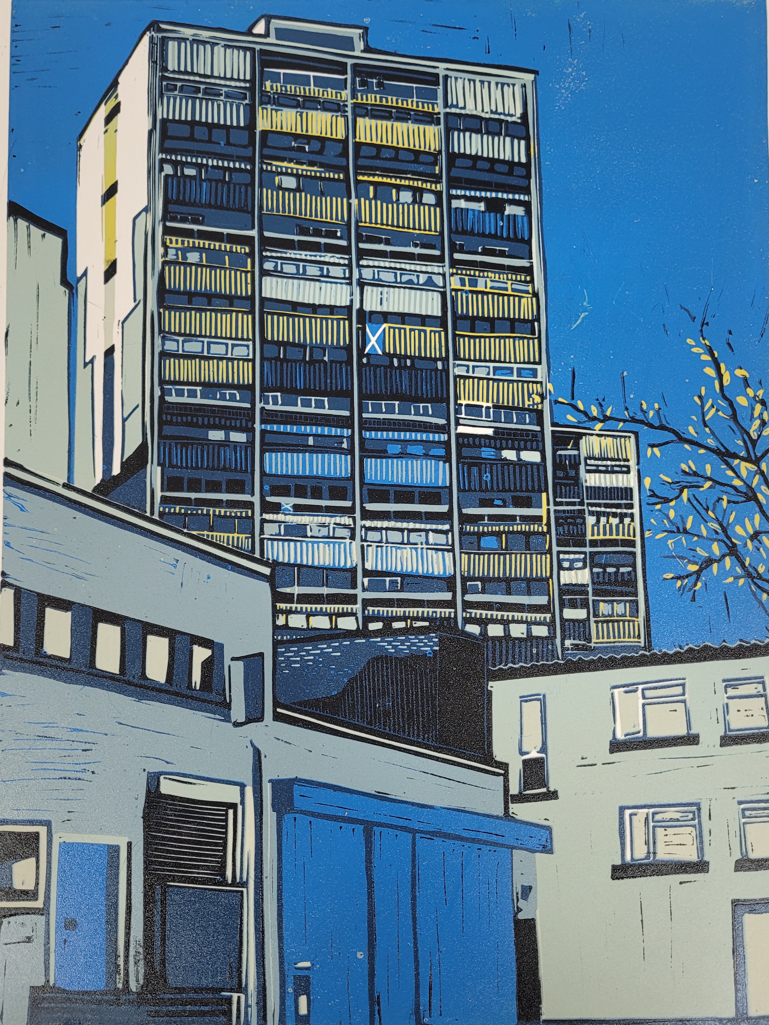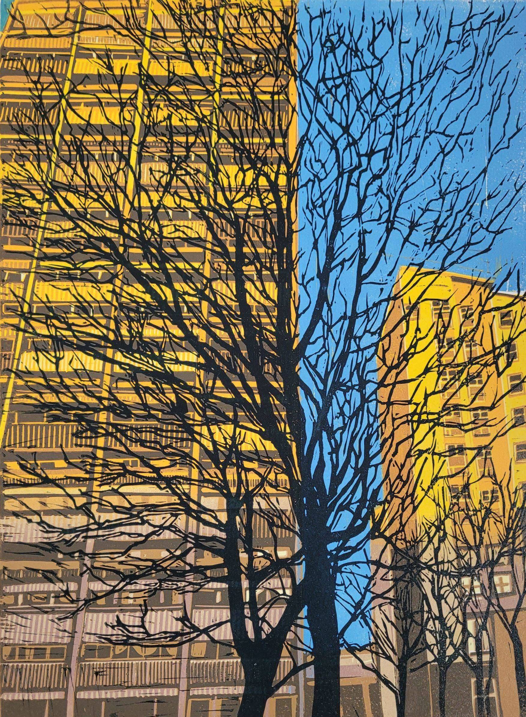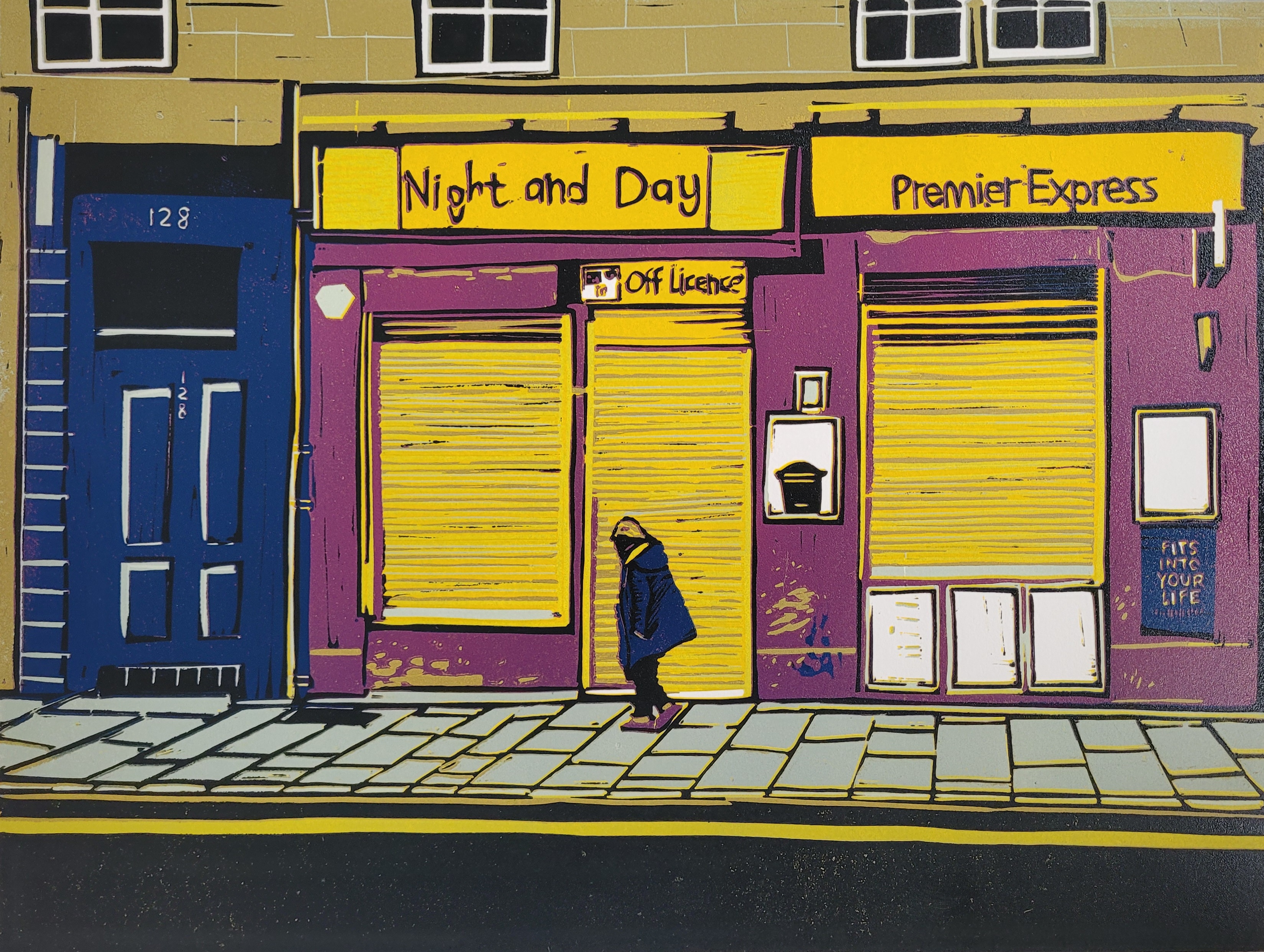 In 2020 I had been teaching at Leith School of Art for 20 years, and planned to have an exhibition to mark the occasion. It was delayed due to the pandemic, and so what was going to be quite a small body of work about Leith became a much bigger one! Leith is a very interesting area – it is full of contradictions – it is industrial and residential, it has areas with a lot of poverty, yet is a hotspot for young professionals, it has some new trendy shops, and many which have been there for generations. I explored these dichotomies through paintings, drawings and prints.